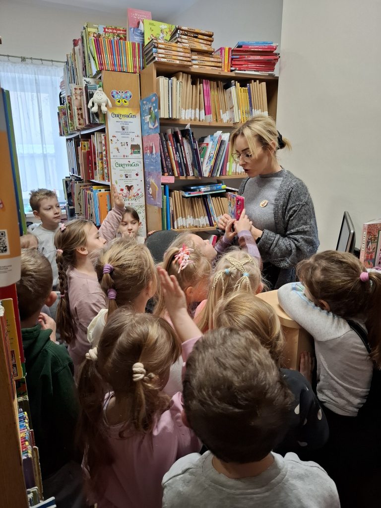 Podczas wizyty dzieci zapoznały się z regulaminem wypożyczalni książek, dowiedziały się, jak dbać o książki oraz jak wygląda proces ich wypożyczania.