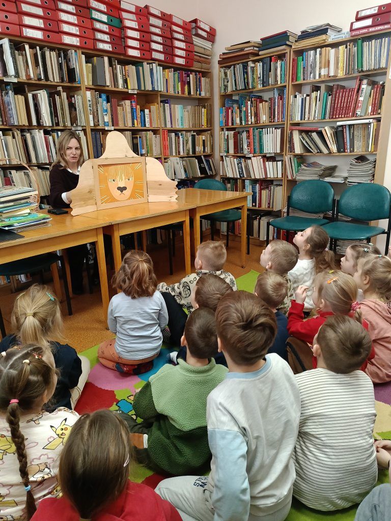 Nie zabrakło również chwili na wspólne słuchanie teatrzyku kamishibai. Historia „Ryczysława Potężnego” S. Furmańskiej wywołała wiele emocji i uśmiechów.