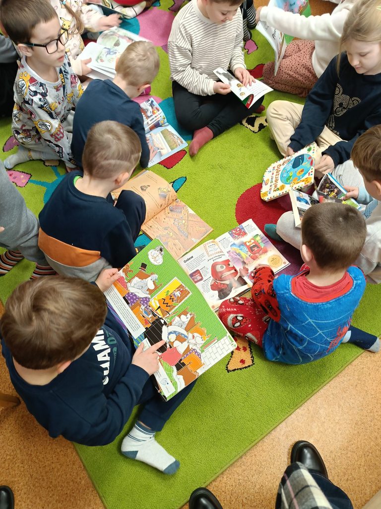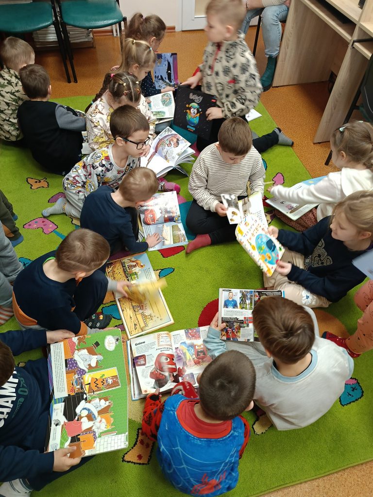 Przedszkolaki z ogromnym zainteresowaniem zapoznawały się z nowościami książkowymi.![]()
