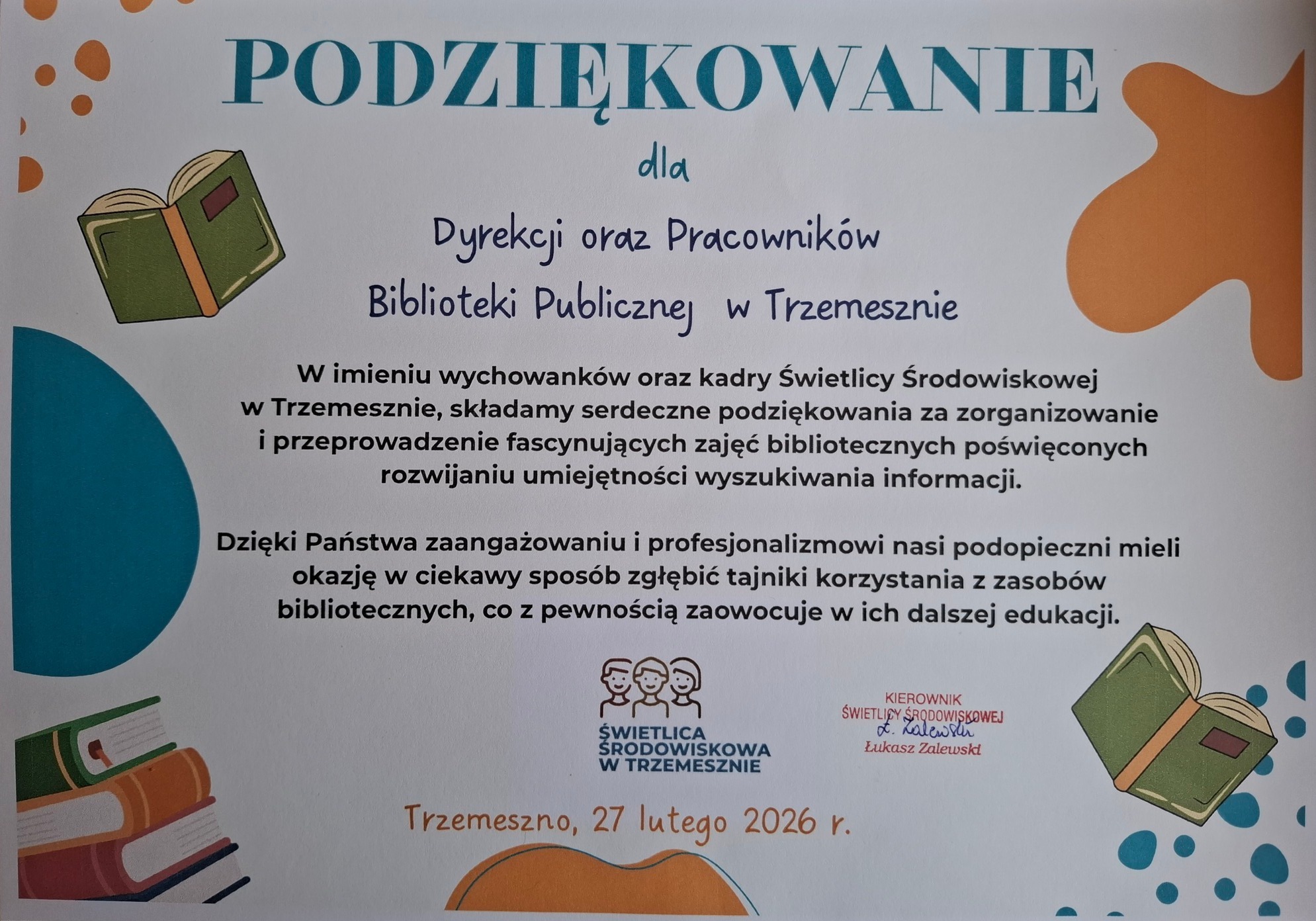 27 lutego uczestnicy zajęć w Świetlica Środowiskowa w Trzemesznie odwiedzili czytelnię Biblioteki.