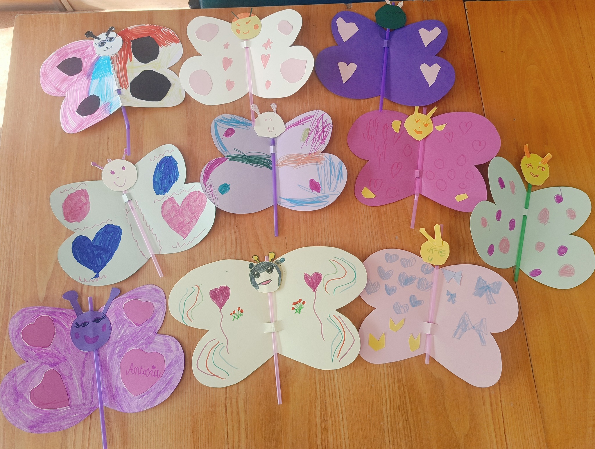 Na zakończenie zajęć dzieci stworzyły piękne, kolorowe motyle, które od razu wprowadziły do naszej sali prawdziwie wiosenny nastrój.![]()